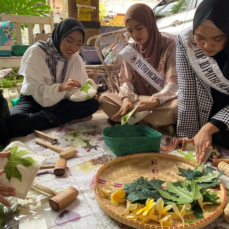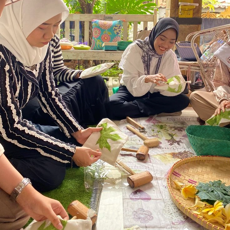 Starting from the situation of environmental waste problems, Editha House as an ecoprint artisan collaborates with seamstresses, leather craftsmen and patchwork craftsmen, disabled friends around the neighborhood, to begin small steps striving for a whole series of sustainable business processes in creating environmentally friendly fashion & craft products that focus on 3P (Planet, People & Profit).